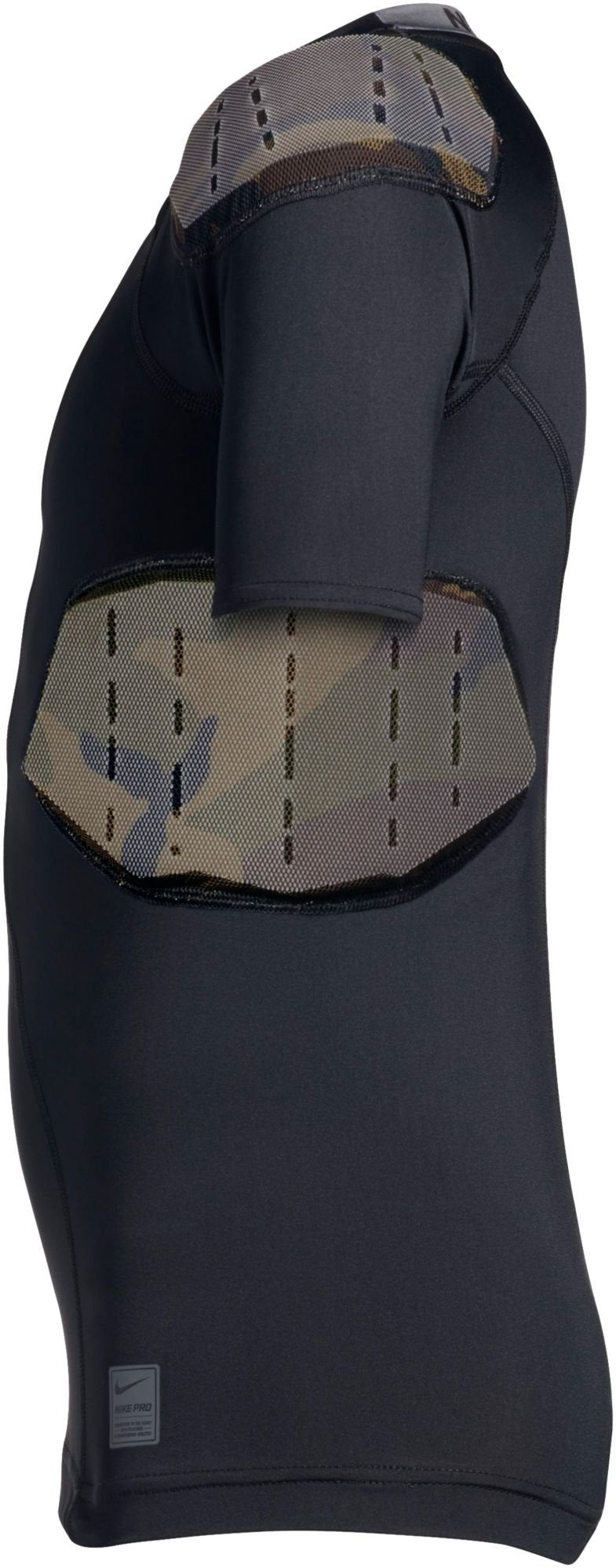 Details: Tough, integrated padding at the shoulder and ribcage makes the Nike Pro Combat Hyperstrong 4-Pad Camo Football Shirt essential for players looking for added protection while maintaining the moisture-wicking construction that keeps athletes performing their best.